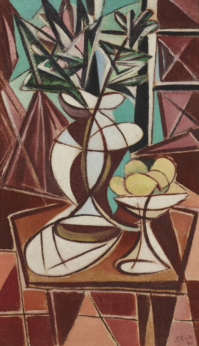 Keyt gradually absorbed Modernist art through Winzer, including Impressionism, Post-Impressionism, Picasso, Braque, Fernand Léger, and Henri Matisse. The photographer Lionel Wendt (1900–44) also energized young artists such as Keyt with the knowledge of cutting-edge avant-garde art he had gained during his studies in Europe, as well as through publications like the French art magazine Cahiers d’Art. From 1933 onward, the influence of Cubism became clearly visible in Keyt’s work. His still lifes were noted for their resemblance to those of Braque, but the compositions constructed from long, sinuous lines that move across the canvas in what can feel like a single continuous stroke, which he developed in later years, were entirely his own.
