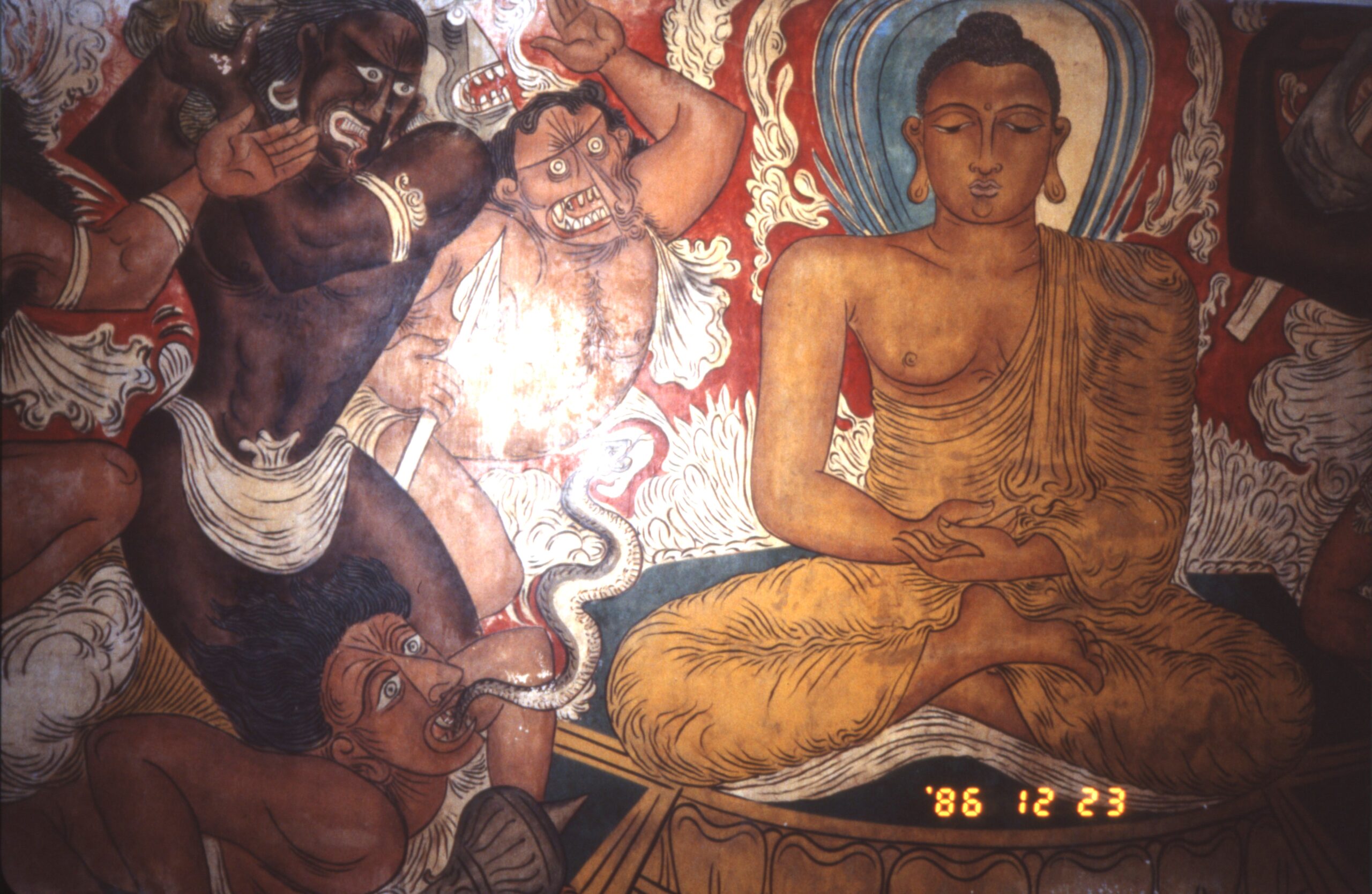 When Keyt was 24, Maligawage Sarlis (1880–1955), who came from a caste associated with painting and other artisanal trades, issued color lithographs of Buddhist imagery, and in the same year a landmark publication tied to the Buddhist reform movement and Sinhala Buddhist nationalism also appeared.[3] While political elements are difficult to discern in Keyt’s paintings, his Buddhist faith should be viewed in the context of an era shaped by nationalism and ethnic movements.[4]